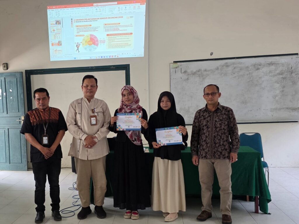 Penyerahan Sertifikat Agen Pojok Statistik Periode 2025–2026 di Fakultas Ekonomi Universitas Almuslim